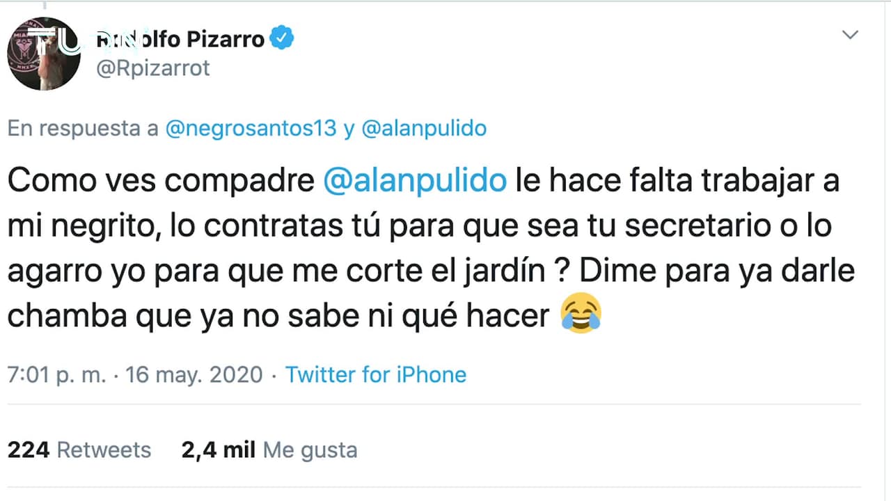 Rápido, Pizarro comentó el tweet de Carlos Santos y le preguntó a Pulido si tenía un trabajo para el brasileño.