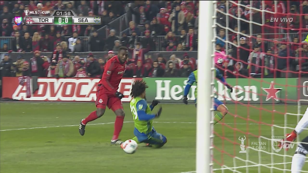 Desde muy temprano la combinación entre Sebastian Giovinco y Jozy Altidore comenzó a generar presión en la zaga de Seattle. A los dos minutos, el delantero de la selección estadounidense le bajó un balón con el pecho al italiano quien controló la pelota y se la devolvió a Altidore, cuyo remate cruzado fue desviado por Román Torres.