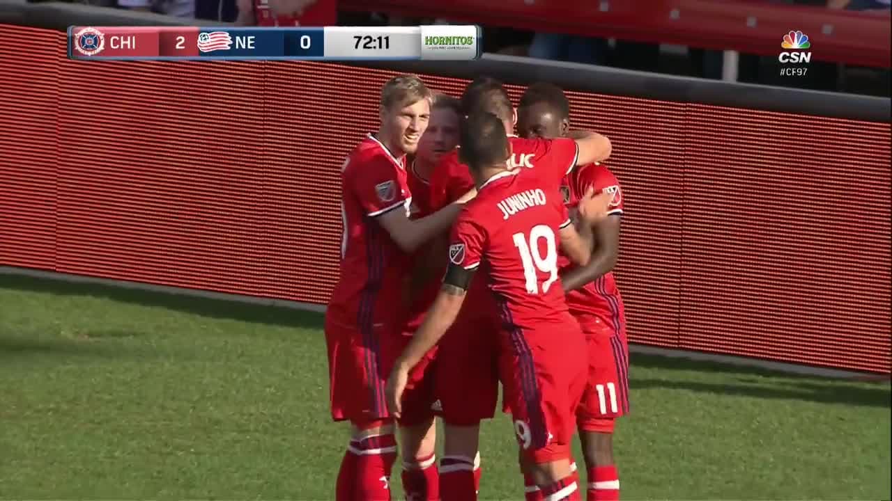 "No hay dos sin tres", dice el viejo refrán. Y en Chicago esa ley de vida se cumple. En el 73' Nikolic -asistido por David Accam y Schweinsteiger- ingresó al área de New England con pasmosa tranquilidad, dejó en el camino a dos defensores y mandó el balón al fondo de la red para decretar el 3-0 con el que finalizaría el partido.