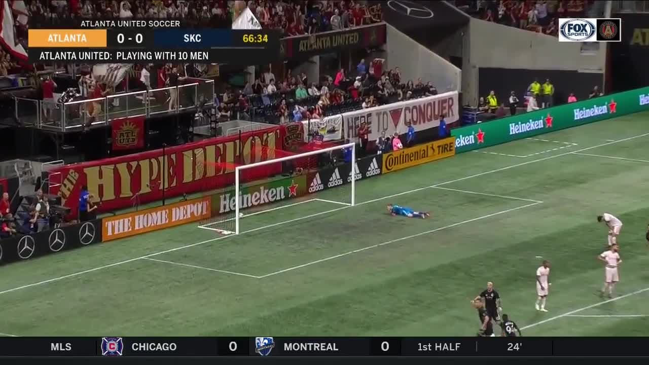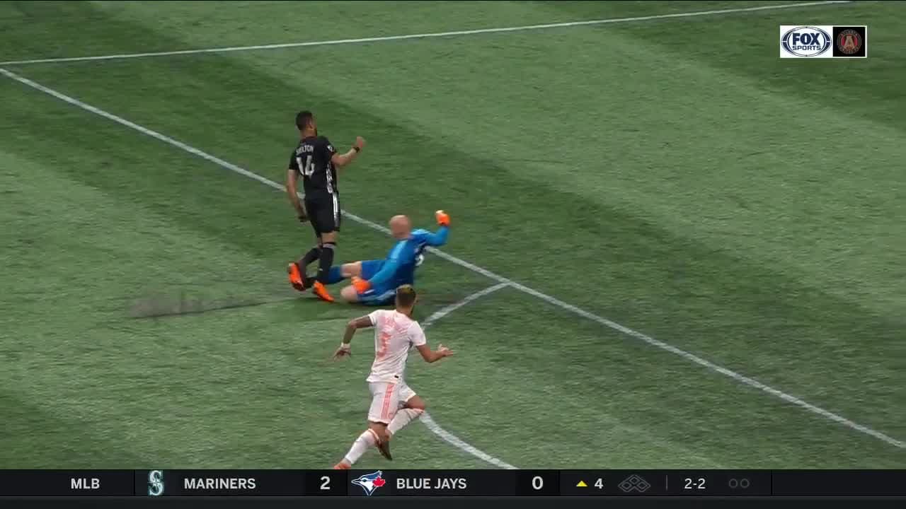 El portero de Atlanta vio la roja directa al minuto 34 por una falta descalificadora sobre Khiry Shelton, obligando a su equipo a aguantar jugar la mayoría del partido en desventaja numérica.