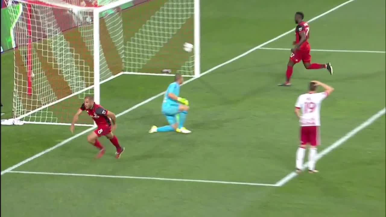 A pesar de verse abajo en el marcador al medio tiempo y no contar con Sebastián Giovinco por lesión, los Escarlatas se lanzaron en busca de mantener su racha. Consiguieron el empate mediante el francés Benoit Cheyrou, quien se tendió de palomita para anotar con menos de 20 minutos por jugarse.