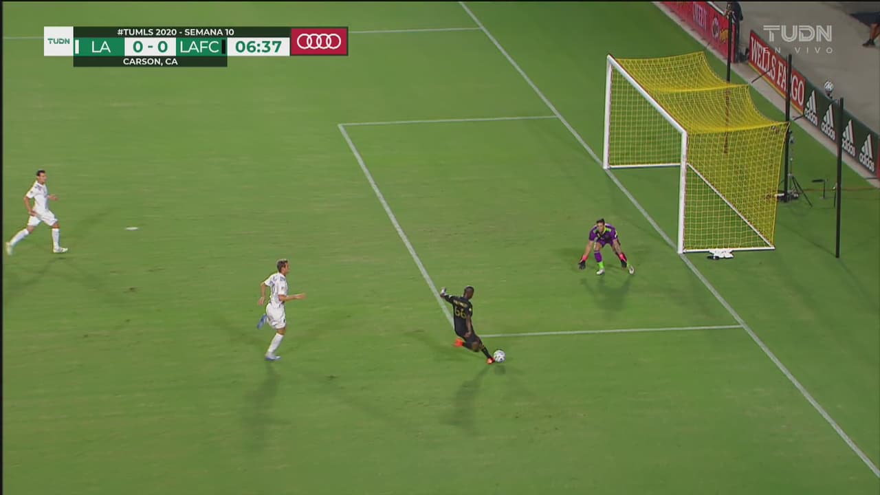 El delantero de LAFC picó al vacío y tras quedar frente a frente con el portero David Bingham remató cruzado y lejos de la portería.