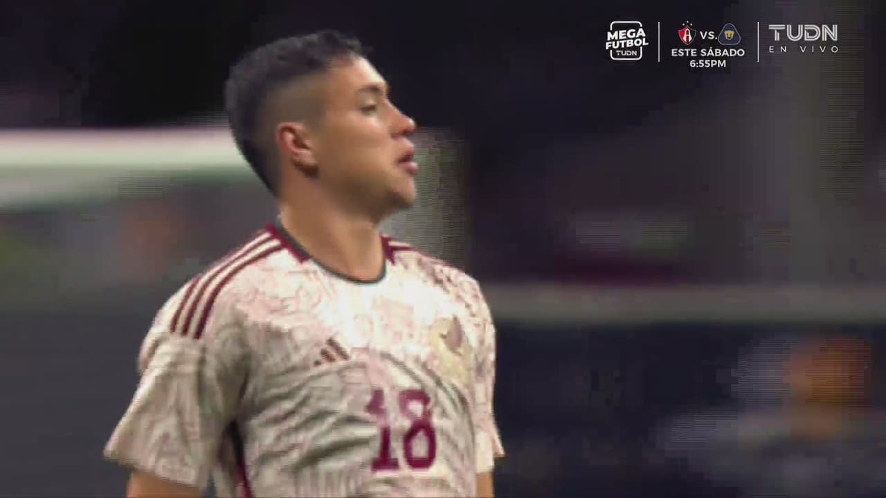 A pesar de que tuvo su primera convocatoria el 8 de diciembre de 2021, no tuvo minutos con el Tri hasta el partido contra Paraguay.