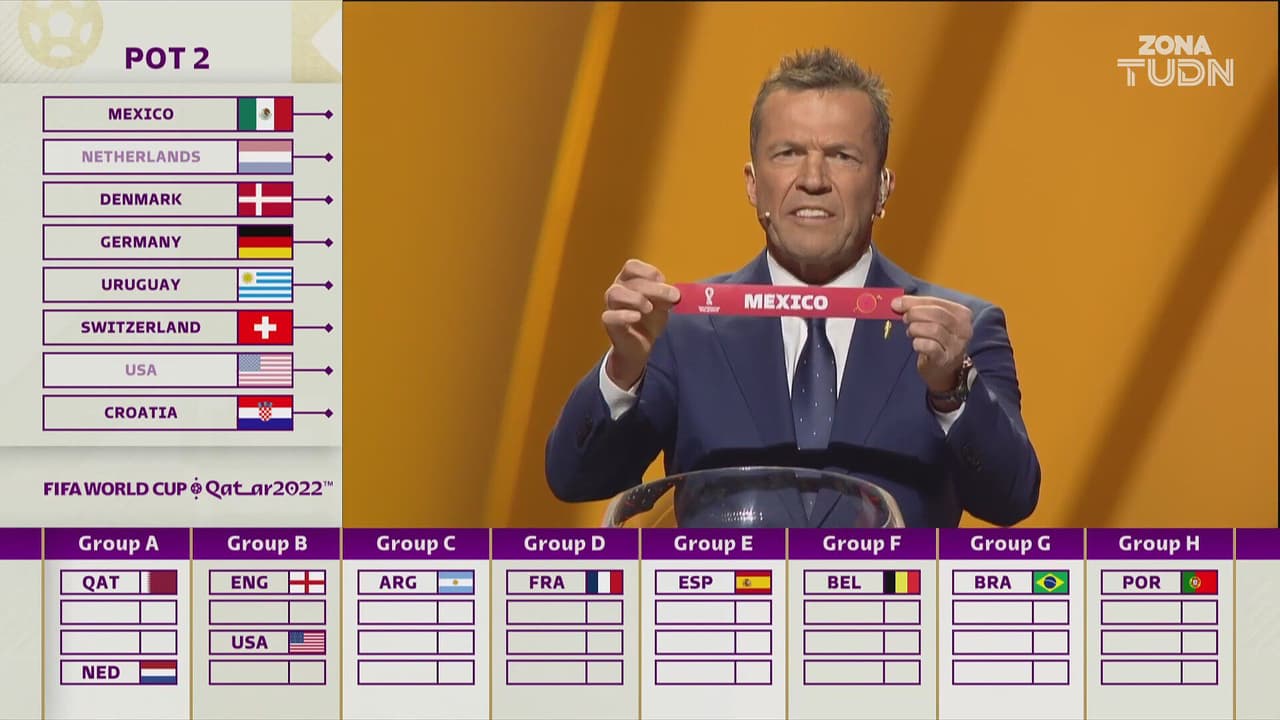 - Bombo 2: México, Países Bajos, Dinamarca, Alemania, Uruguay, Suiza, Estados Unidos y Croacia.