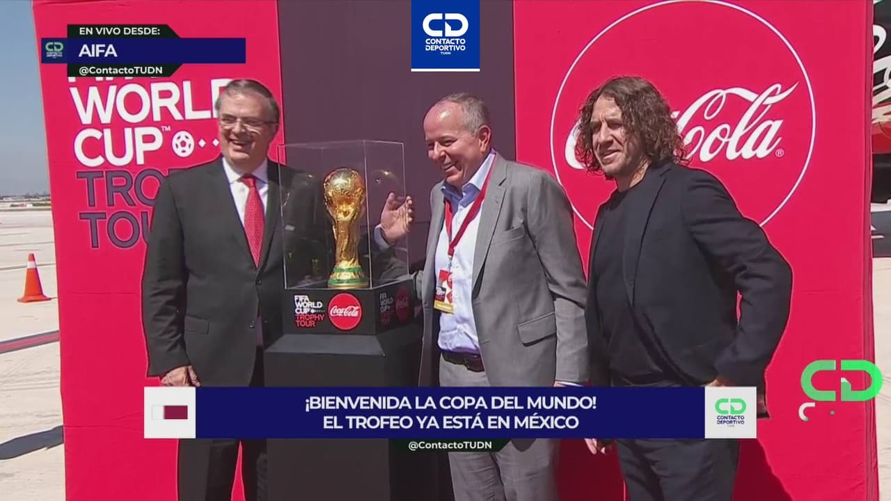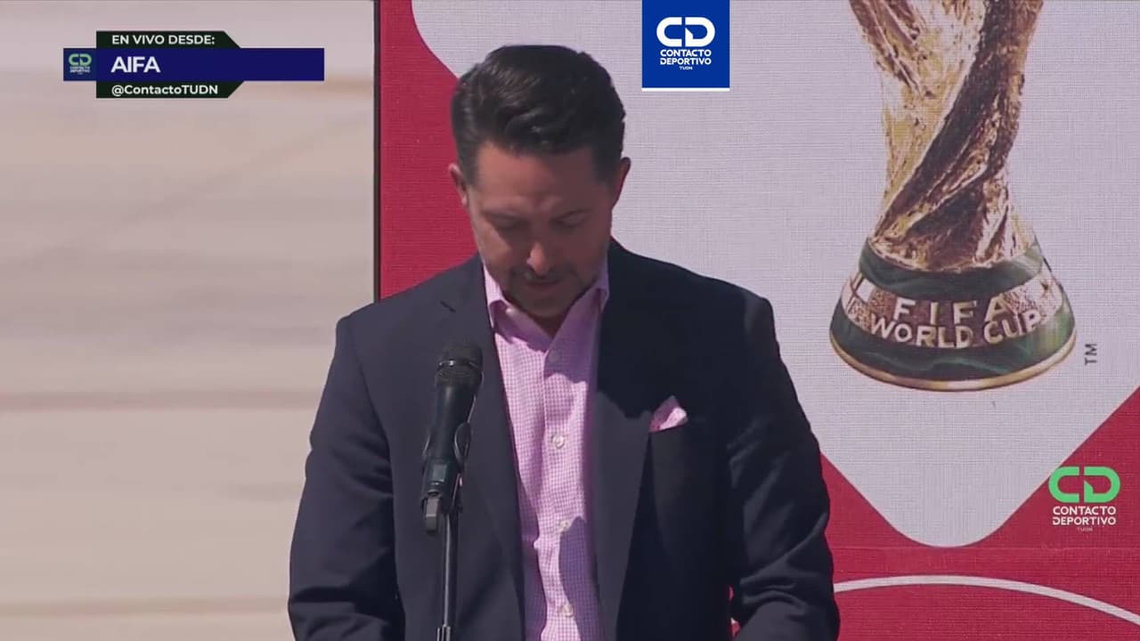 El presidente de la Federación Mexicana de Futbol (FMF), Yon de Luisa estuvo presente en la llegada el trofeo de la Copa del Mundo a la Ciudad de México en las instalaciones del Aeropuerto Felipe Angeles.