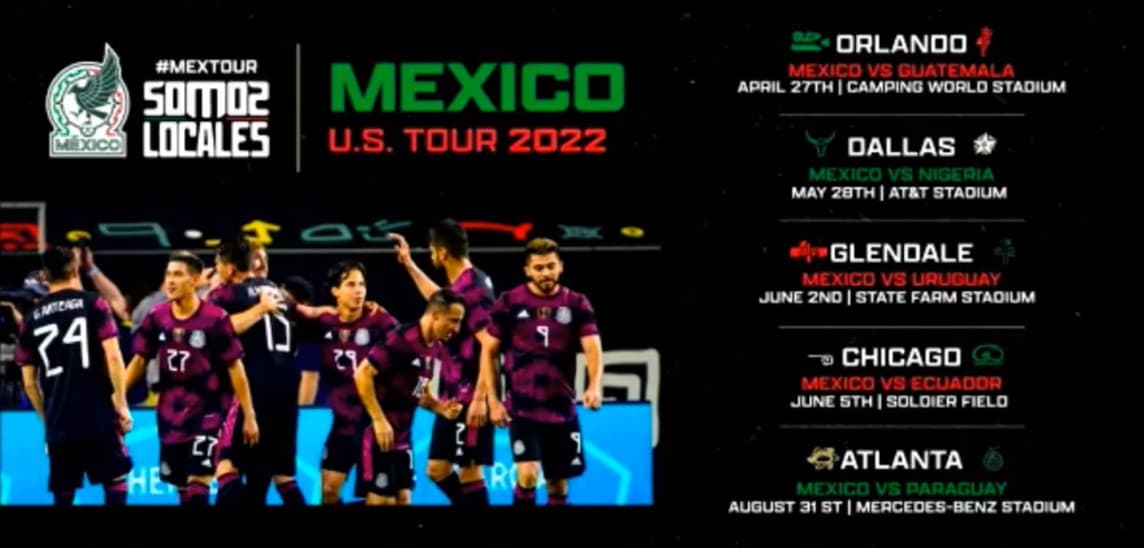 La selección de México dio a conocer este martes sus juegos amistosos de preparación de cara al Mundial Qatar 2022 donde enfrentará a Ecuador, Uruguay, Nigeria y Paraguay en los Estados Unidos.