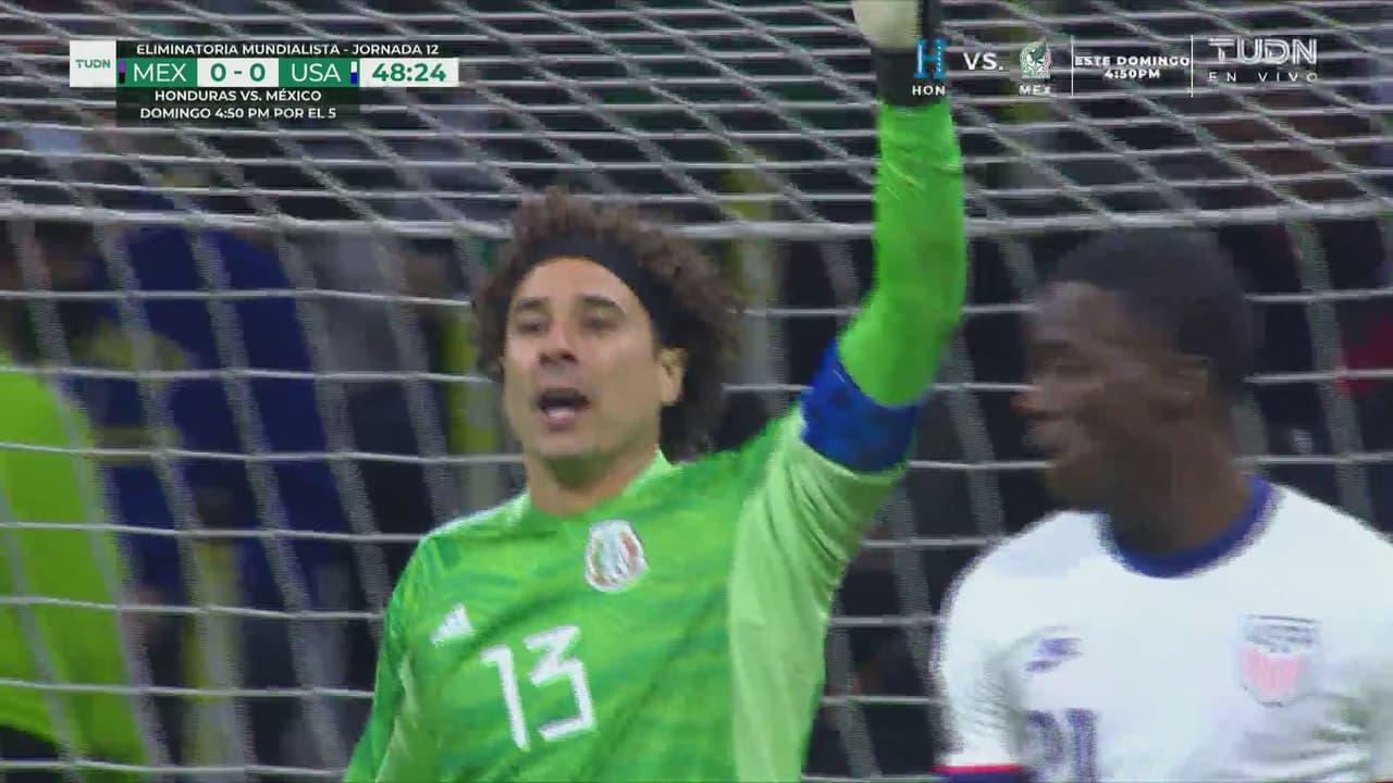 Edson Álvarez quiso entrar al quite y también fue burlado por el estadounidense mientras que Johan Vázquez buscó la barrida pero no tuvo éxito y al final fue Vázquez quien detuvo la veloz carrera de Gio Reyna, un contragolpe que representó mucho peligro para la portería que defiende Guillermo Ochoa.