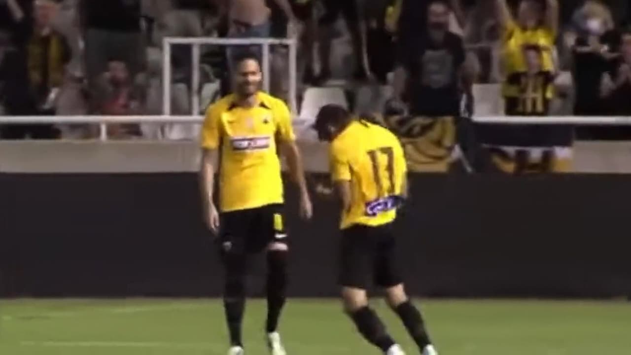 El mexicano Orbelín Pineda anotó su primer gol con el AEK de Atenas y adelantó al equipo dirigido por Matías Almeyda ante el Omonia Nicosia.