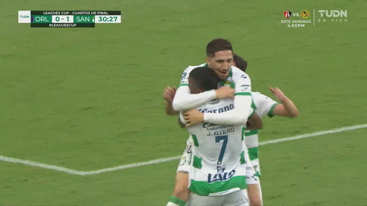 Tras un inicio vibrante por ambas escuadras, fue Santos Laguna el que se fue adelante en el marcador al minuto 30 tras un disparo de Juan Otero con el pie derecho que el portero del Orlando City no pudo sacar.