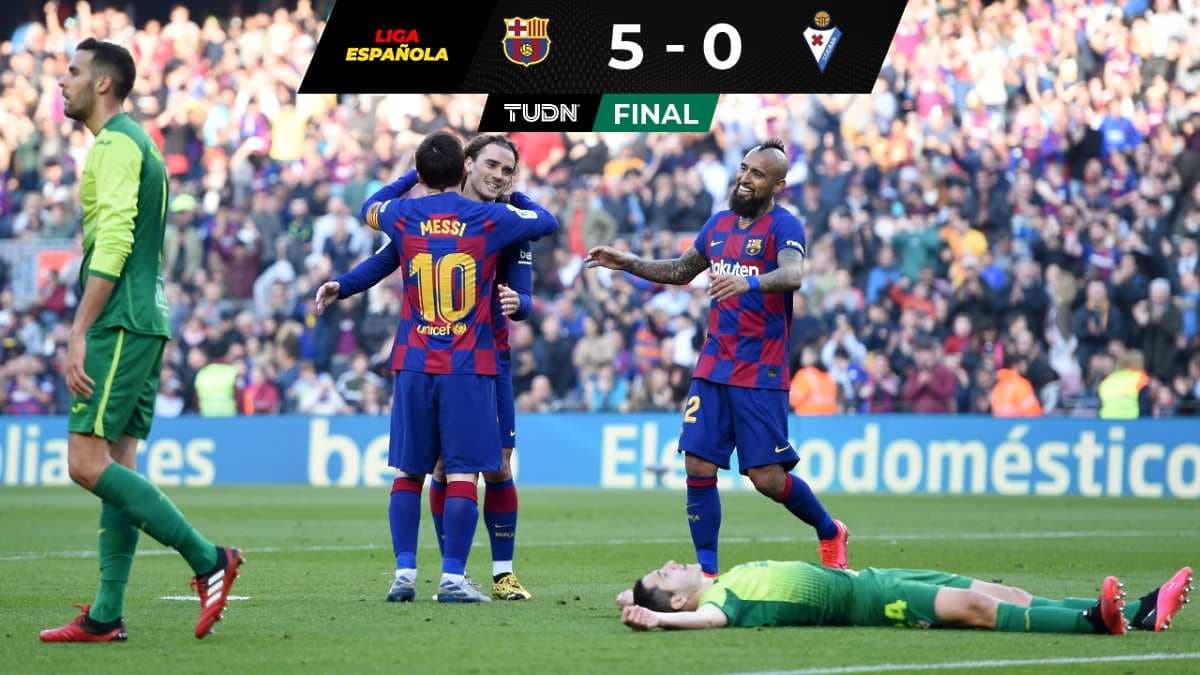 Lionel Messi deslumbra con cuatro goles en humillación de los blaugrana al Eibar en La Liga.
