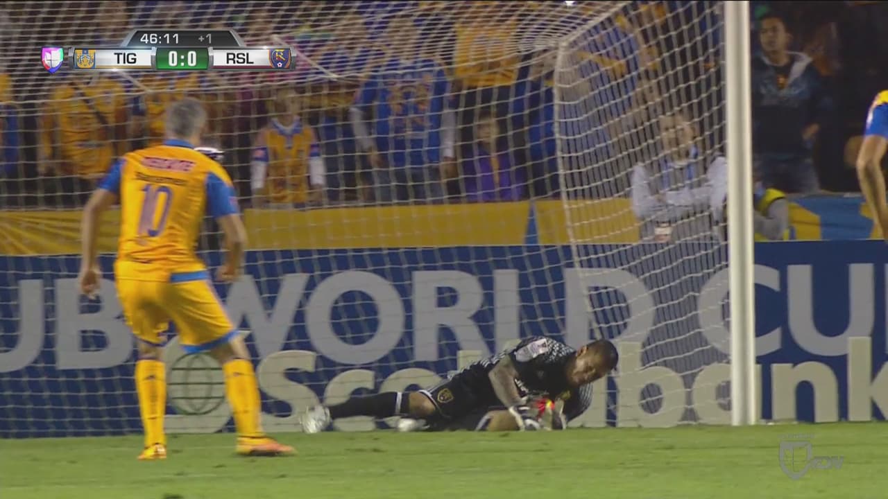 El delantero francés de Tigres no supo aprovechar un penal a favor de los universitarios y lo falla al final de la primera mitad.