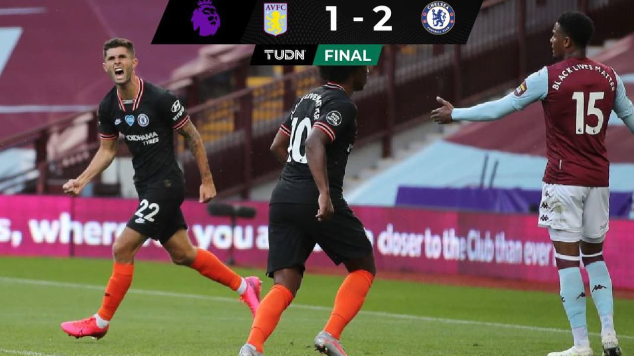 Chelsea, con una destacada participación de Christian Pulisic los últimos 35 minutos del partido, venció 2-1 en su visita al Aston Villa, choque válido por la jornada 30 de la Premier League.