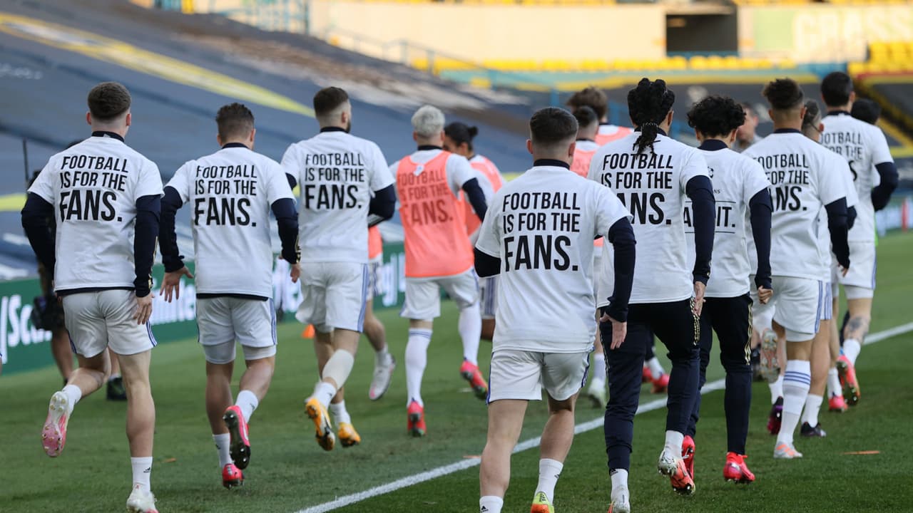 De entrada, los jugadores del Leeds United salieron a calentar con camisetas que tenían impresa la leyenda " El futbol es para los fans" en la espalda y en el frente "Gánatelo" junto al logo de la Champions League.