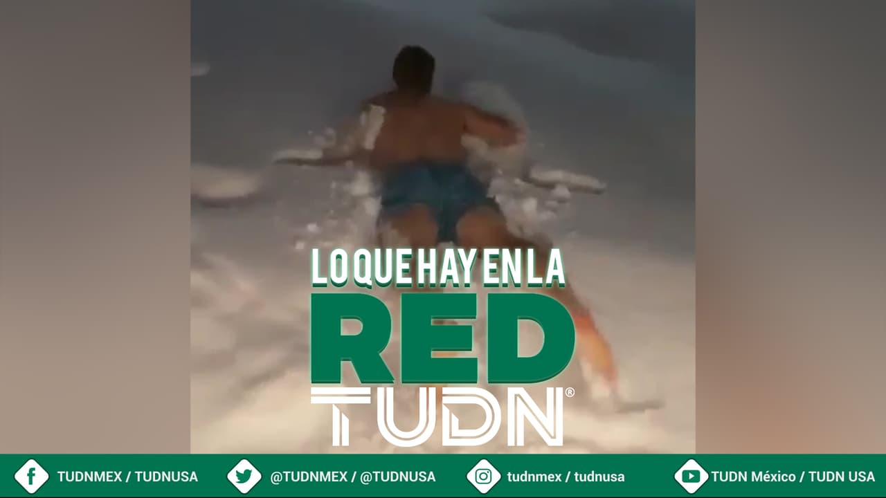 El delantero presume cómo brinca de la nieve a una tina caliente.