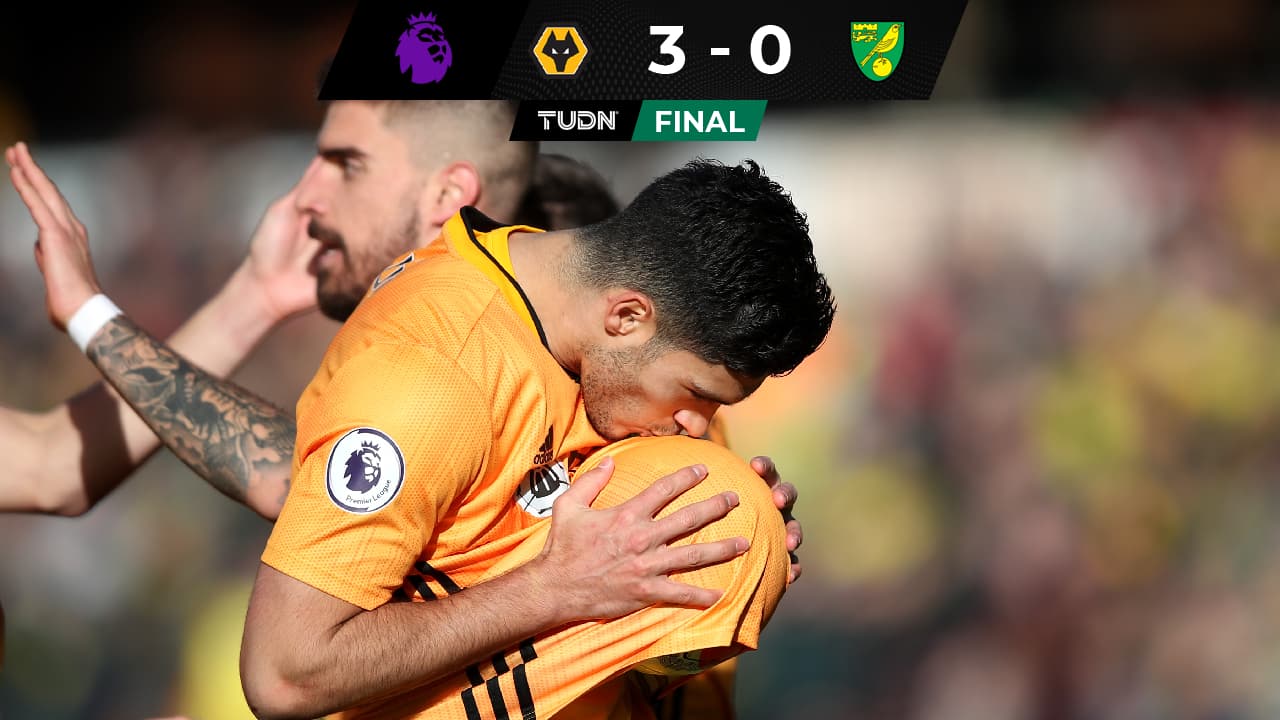 El Wolverhampton venció 3-0 al Norich City con doblete de Diogo Jota y un tanto del mexicano.