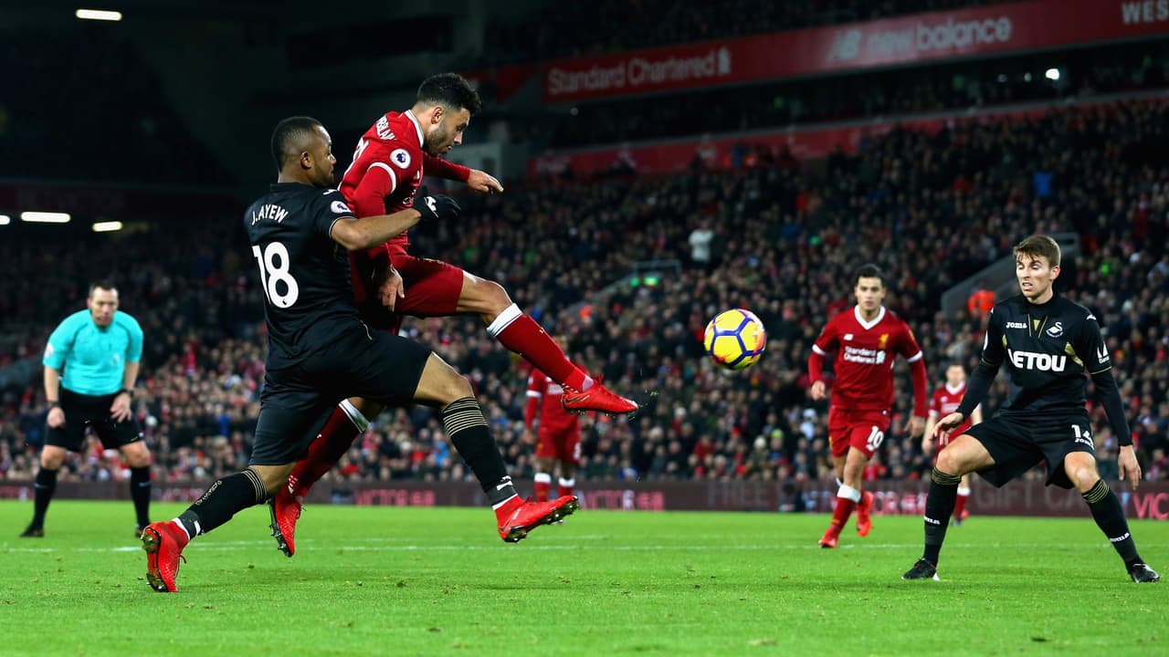 En sólo dos minutos llegaron los tantos de Trent Alexander-Arnold (65), de 19 años y que rompió en velocidad la defensa del Swansea para anotar en carrera desde dentro del área su primer gol en la Premier, y, de nuevo, Firmino (67), que selló su doblete tras un pase de Mohamed Salah.