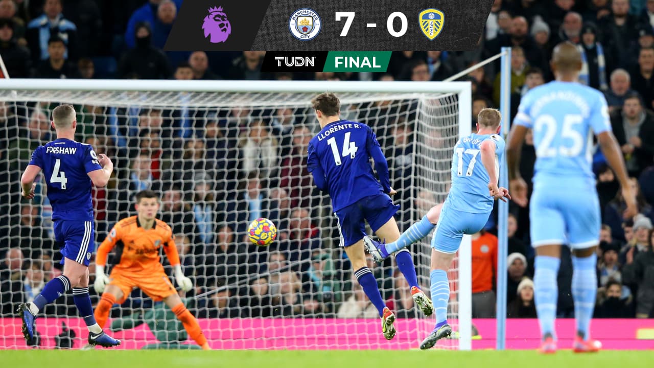 Comenzó la Jornada 17 de la Premier League y el Manchester City aseguró mantenerse como líder una Jornada más, después de aplastar 7-0 al Leeds United.