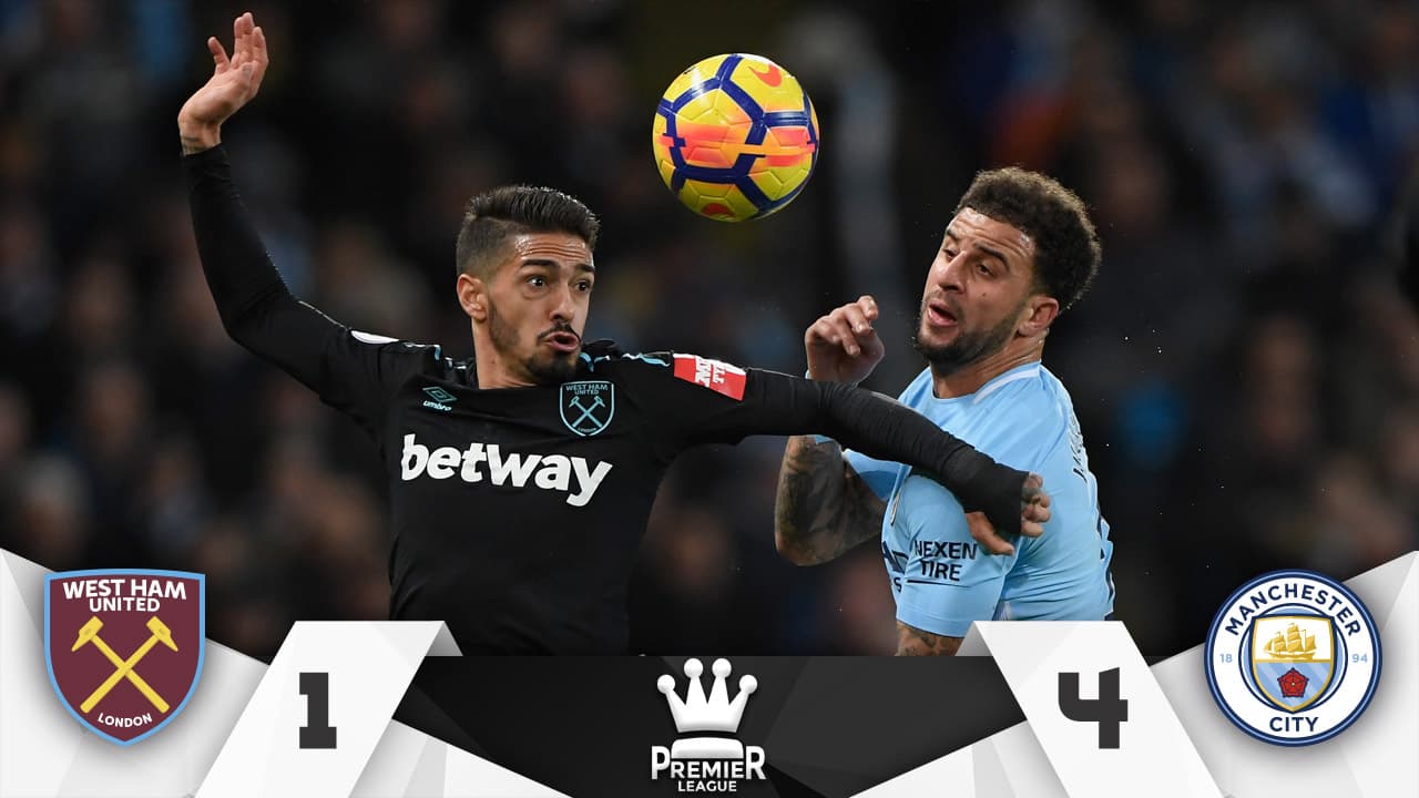 El Manchester City, campeón de la Premier, goleó al West Ham 1-4 y enfiló la consecución de nuevos récords históricos en la competición inglesa. El cuadro de Pep Guardiola igualó el número de victorias en un mismo curso que estaba en poder del Chelsea de Antonio Conte.