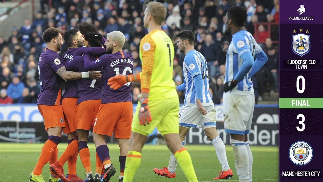 Manchester City se impuso sin problemas 3 por 0 en el terreno del colista Huddersfield Town, este domingo durante la Jornada 23 de la Premier League, con lo que acortó distancia en el sugundo puesto para acechar de cerca al líder Liverpool.