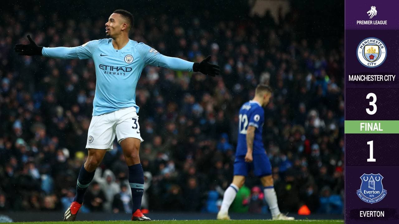 Manchester City recuperó de forma provisional el liderato de inglaterra ras vencer 3-1 en casa al Everton con una fantástica actuación del brasileño Gabriel Jesús en el partido que inauguró la Fecha 17 de la Premier League.