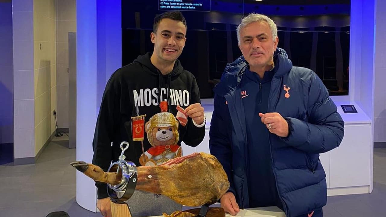 "Una promesa es una promesa. Me ha costado 500 libras (560 euros), pero cumplo mis promesas", rezó el mensaje del técnico portugués en las últimas horas en su cuenta de Instagram. Acompañando este mensaje, una instantánea en la que Mourinho y Reguilón aparecen muy sonrientes en el vestuario del Tottenham mientras disfrutan de un exclusivo Jamón Ibérico 5J.
