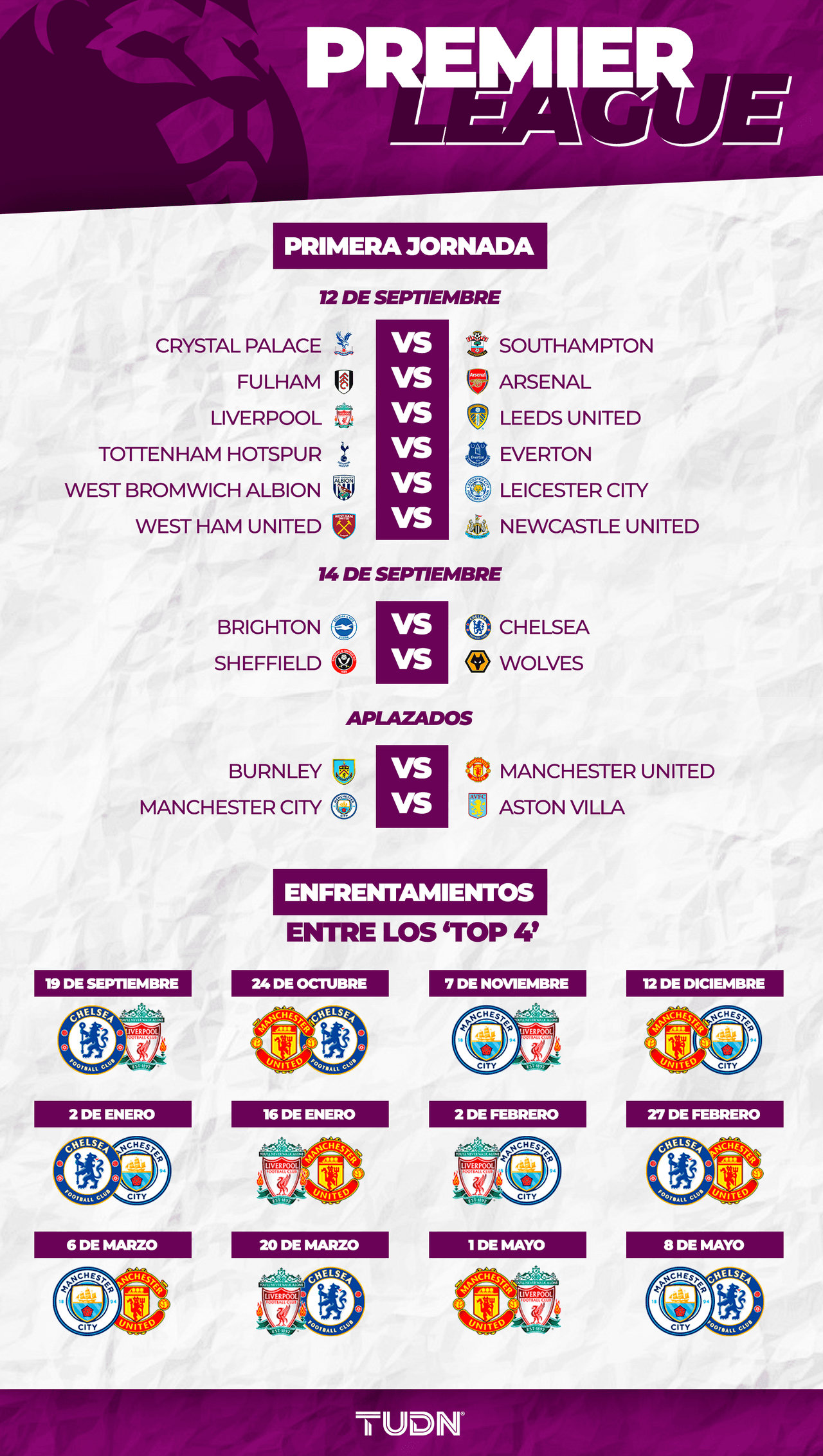 El día que vuelva a la acción el mexicano en acción, también jugarán Chelsea y Brighton; por su parte, los partidos entre Burnley en contra de Manchester United y el Manchester City ante Aston Villa, no tienen fecha definida.