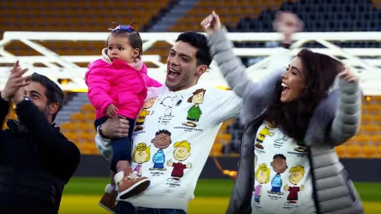 Wolverhampton preparó una dinámica en la que el artillero mexicano se enteraría, junto con su pareja, de la gran noticia en plena cancha del Molineux con una caja en el campo que revelaría la noticia esperada.