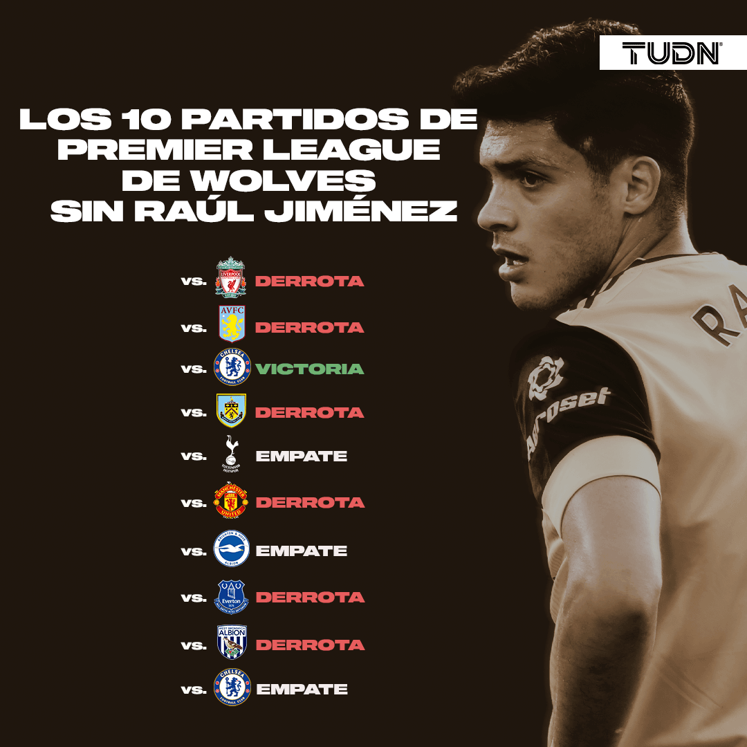 El problema se agravó cuando Wolves marcó solo 10 goles en 10 juegos, consiguió seis puntos de 30 posibles, gran diferencia a lo que hizo en los 10 juegos previos a la lesión de Jiménez, con una cosecha de 11 anotaciones y 17 puntos.