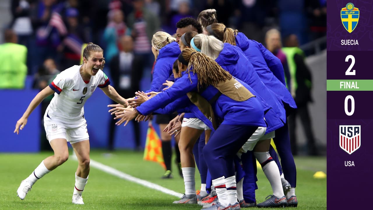 Lindsey Horan (3') y autogol de Jonna Andersson (50'), fueron las autoras de los goles del cuadro estadounidense, que busca su cuarto Campeonato del Mundo.