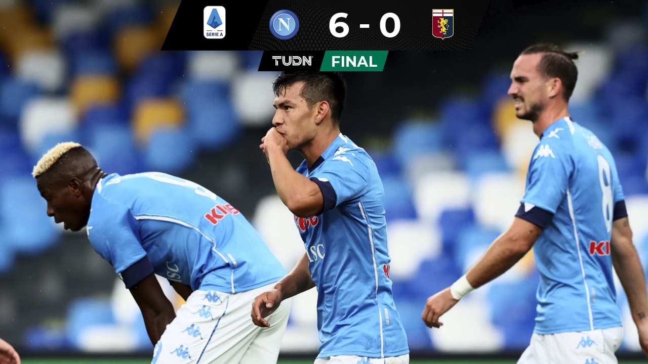 Hirving Lozano logró su doblete con disparo pegado al poste ante el portero del Genoa después de una soberbia asistencia de Mertens para que Chucky hiciera el 4-0 al minuto 65. El mexicano salió después de su segundo gol del juego al 66'.