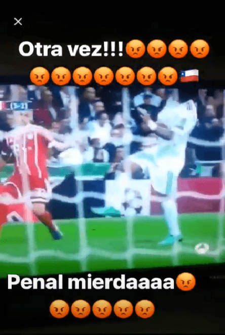 Arturo Vidal colgó dos 'stories' en su cuenta de Instagram quejándose por el arbitraje del colegiado turco Cüneyt Çakir.