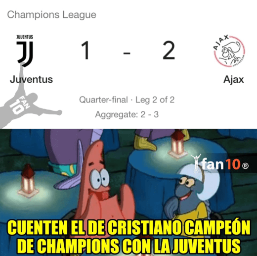 Este día el Ajax le propina un duro revés a la Vecchia Signora y en lo personal al delantero portugués Ronaldo, que registró una marca negativa en su haber en la búsqueda por la orejona, esto pese a que fue el autor del único gol de los italianos en Turín.