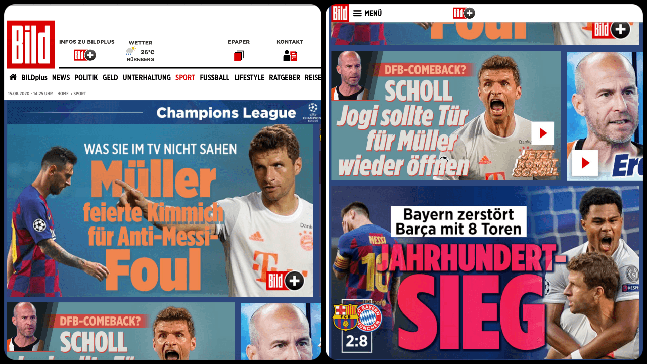 Por otra parte, Bild en digital también mantiene en su portada distintas notas sobre la eliminación del equipo blaugrana, pero se resalta la frase “jahrhundert-sieg”, que traducido al español significa “victoria del siglo”.