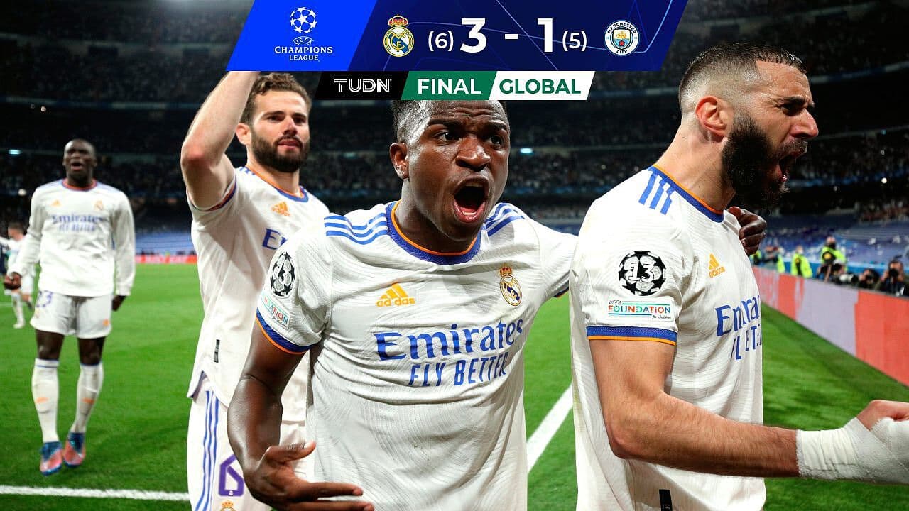 Rodrygo marcó doblete a pocos minutos del final y Benzema sentenció en tiempos extra al City.