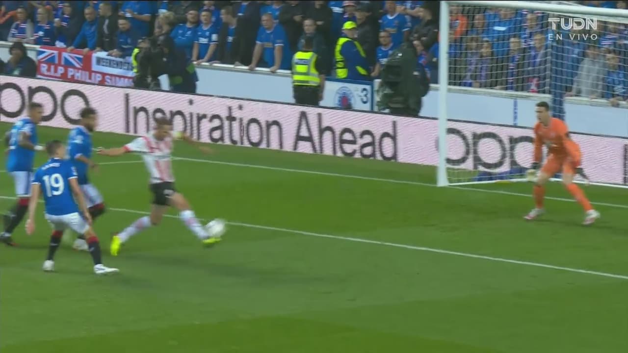 Luuk logra quitarse la marca de la zaga y queda solo, pero remata mal y lo manda por arriba.