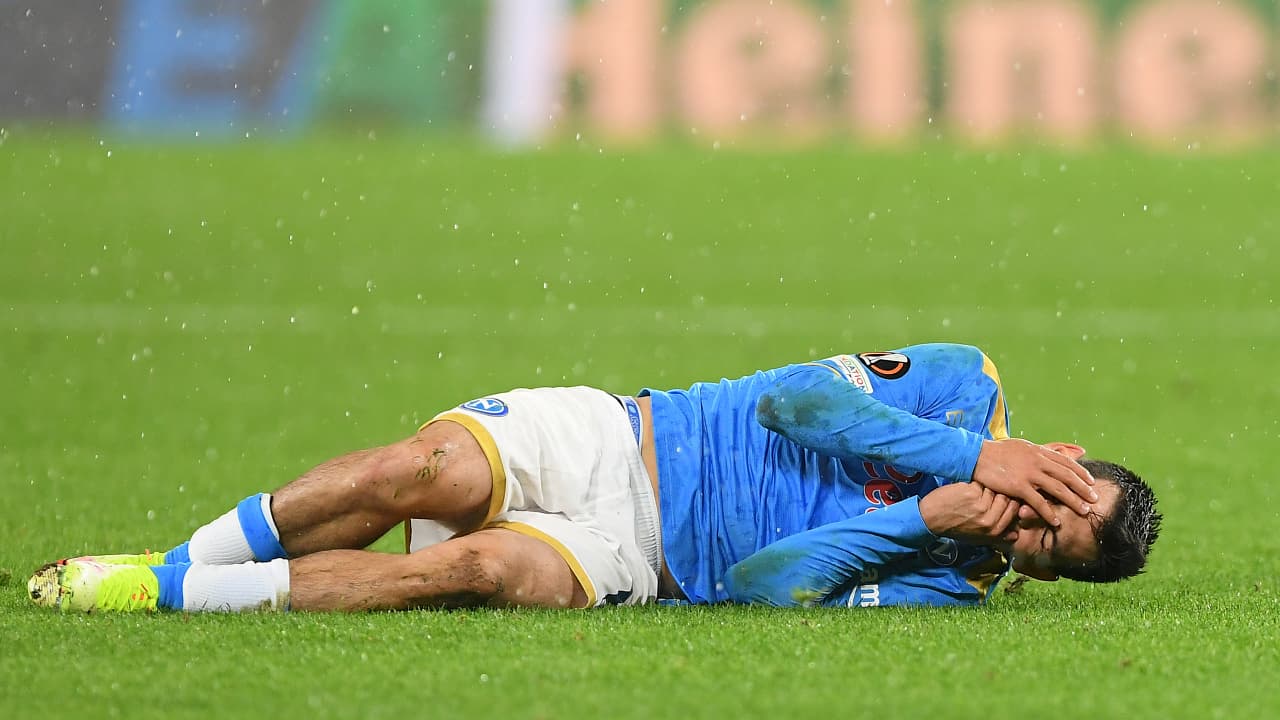 El jugador mexicano del Napoli, Hirving ‘Chucky’ Lozano, tuvo que abandonar el partido que su equipo ganó 3-2 ante el Leicester debido a un fuerte golpe en la cabeza y cuello en el cierre de la fase de grupos de la Europa League.