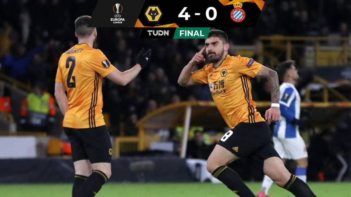 Con Raúl Jiménez en cancha, el Wolverhapton arrasó 4-0 al Espanyol en el partido de ida de los Dieciseisavos de Final de la UEFA Europa League, gracias a tres goles de Diogo Jota y uno de Rubén Neves.