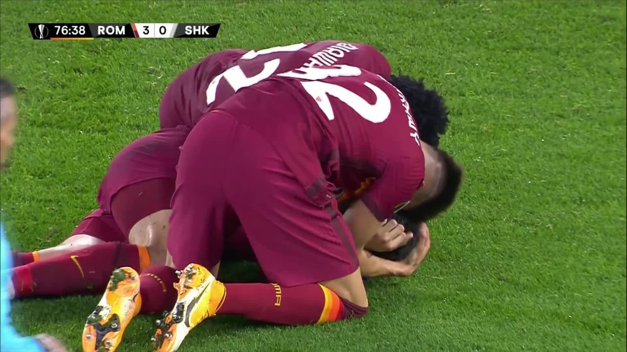 ¡Gol! AS Roma 3| Shakhtar Donetsk 0. Gianluca Mancini (AS Roma) disparo de cabeza desde muy cerca por arriba. Asistencia de Bryan Cristante con un pase de cabeza tras un saque de esquina.