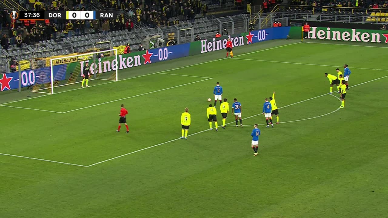 ¡Gol! Borussia Dortmund 0| Rangers 1. James Tavernier (Rangers) Disparo con la derecha desde el centro del área.