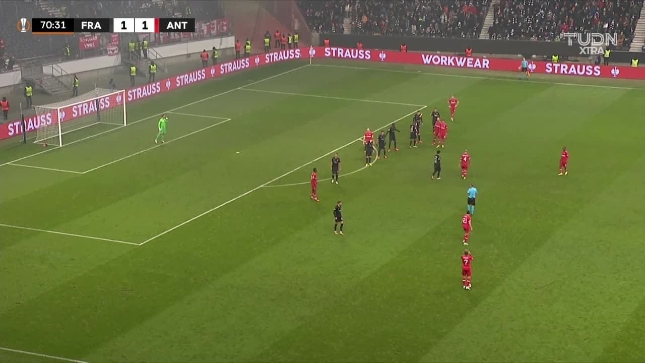 ¡Gol! Eintracht Frankfurt 1| Royal Antwerp 2. Ritchie De Laet (Royal Antwerp) Disparo con la derecha desde muy cerca disparo rastrero| junto al palo izquierdo. Asistencia de Viktor Fischer con un centro al área tras el cobro de una falta.