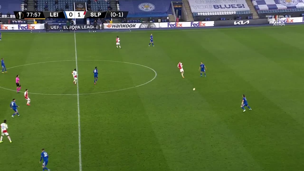¡Gol! Leicester City 0| Slavia Prague 2. Abdallah Dipo Sima (Slavia Prague) Disparo con la derecha desde fuera del área por el lado derecho de la portería. Asistencia de Peter Oladeji Olayinka.
