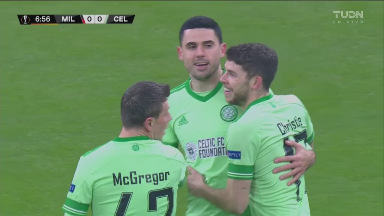 Celtic toma la ventaja ante AC Milan gracias a una mala salida de Krunić y anotaron a los 7 minutos.