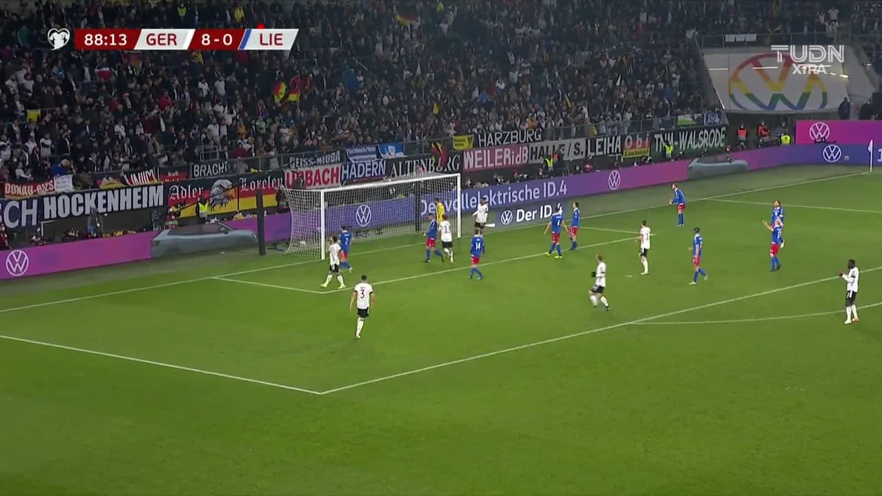 Sobre los últimos minutos, Alemania concretó una goleada histórica sobre Liechtenstein que se quedó con uno menos desde el minuto 10.