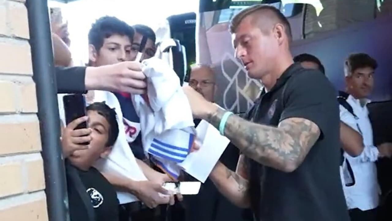 El único futbolista que tuvo un detalle con estos aficionados fue el alemán Toni Kroos que se detuvo para firmar unos autógrafos a los pequeños niños presentes.