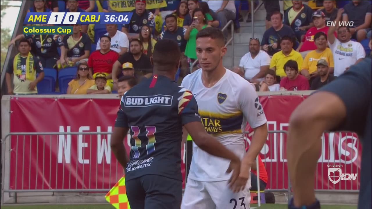El mediocampista de Boca Juniors pisó al colombiano americanista al que no le gustó el recuerdito y regresó a enfrentar al argentino ex Cruz Azul.