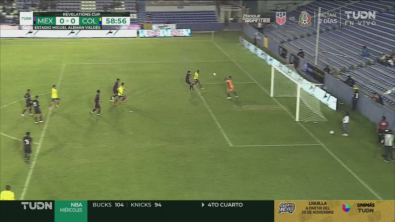 Tiran el desmarque a la espalda de la defensa y el atacante colombiano no logra marcar.