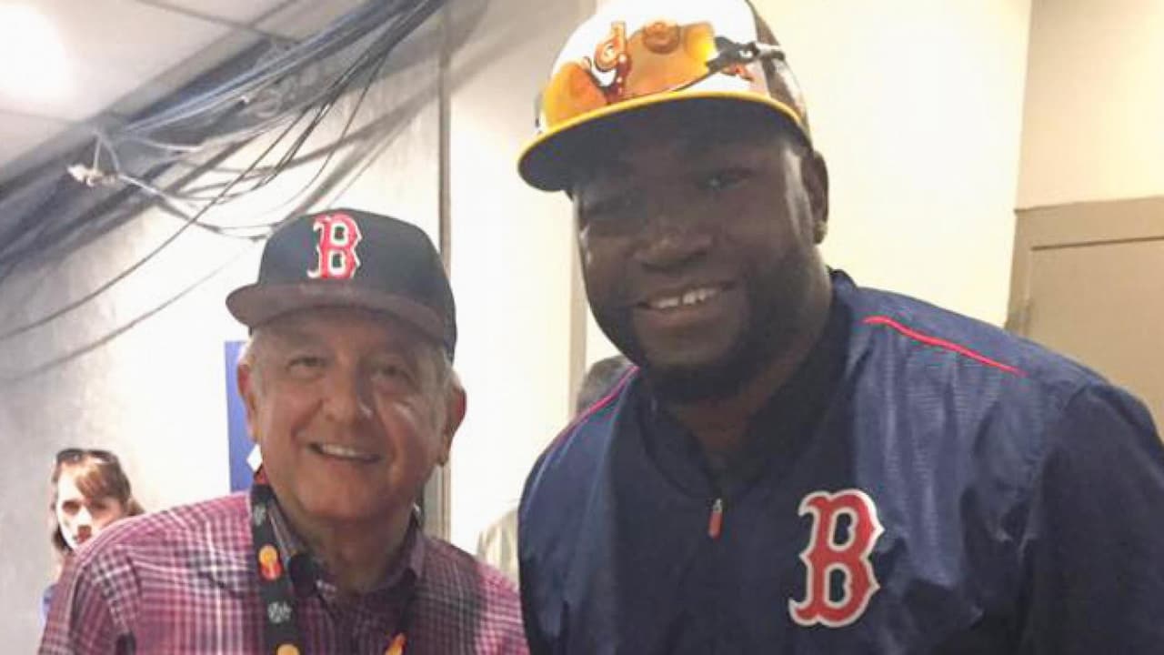 López Obrador colocó en la red social una foto con su hijo menor al lado de Ortiz, en la cual el político y el menor llevan puestas gorras de los Medias Rojas de Boston, el equipo en el que el caribeño hizo historia como uno de las bateadores de más poder en el béisbol en el siglo XXI.