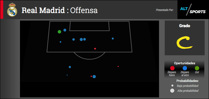 Mientras que el Real Madrid fue un equipo más constante a la ofensiva, con oportunidades de Cristiano Ronaldo al 26', Isco al 45’+2, Ronaldo al 49’, Isco al 74’ y Kroos al 81’, destacando el gol de Nacho. Sólo 2 de 15 ocasiones del PSG fueron a gol, donde la alta calidad de oportunidades que tuvieron un valor de gol esperado (EGV es la probabilidad de anotar un gol de un tiro - y es una forma de medir la calidad de la oportunidad) por encima de 0.35, en comparación con el 7.0 en total para el Real Madrid.
