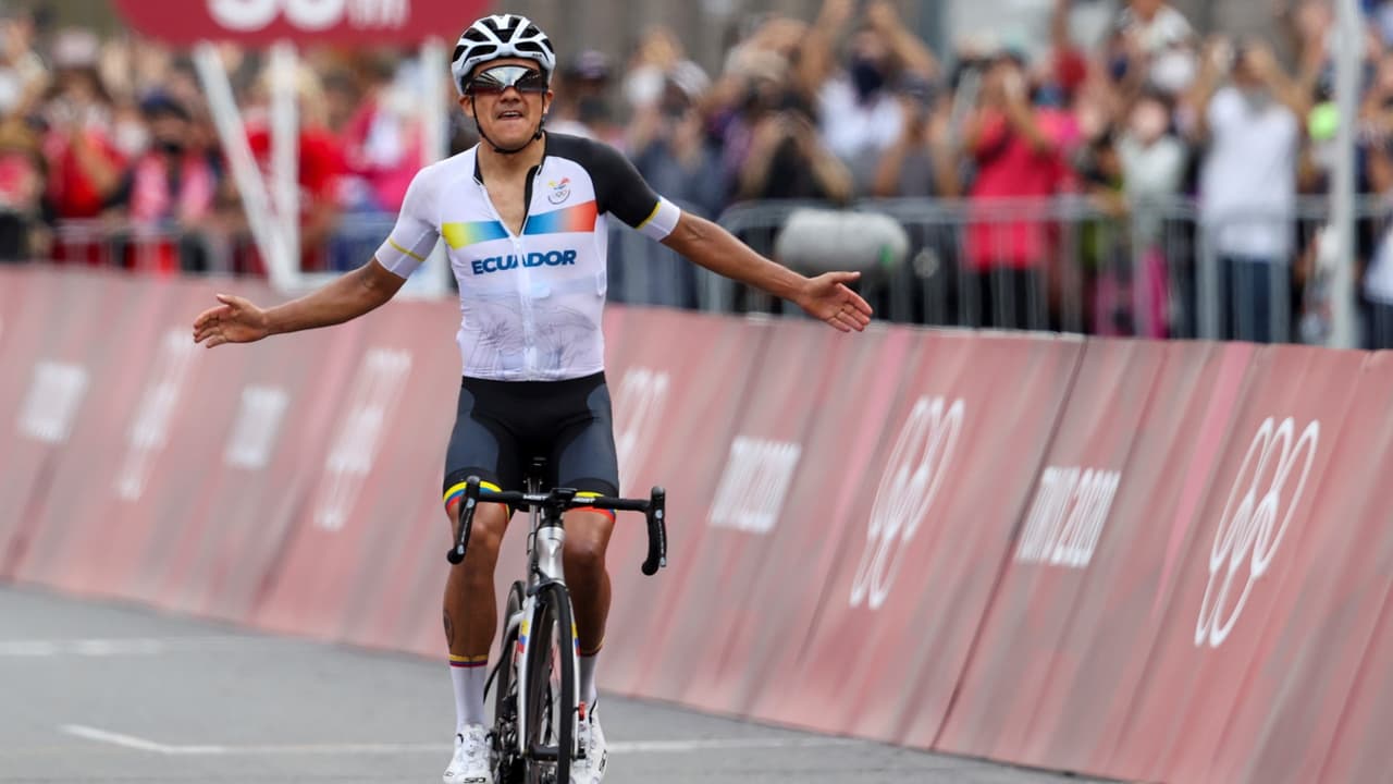 Carapaz cruzó en solitario bajo el arco con un tiempo de 6 horas 5 minutos y 26 segundos, por delante del belga Wout Van Aert consiguió y el esloveno Tadei Pogacar, quienes ganaron la plata y el bronce, respectivamente.