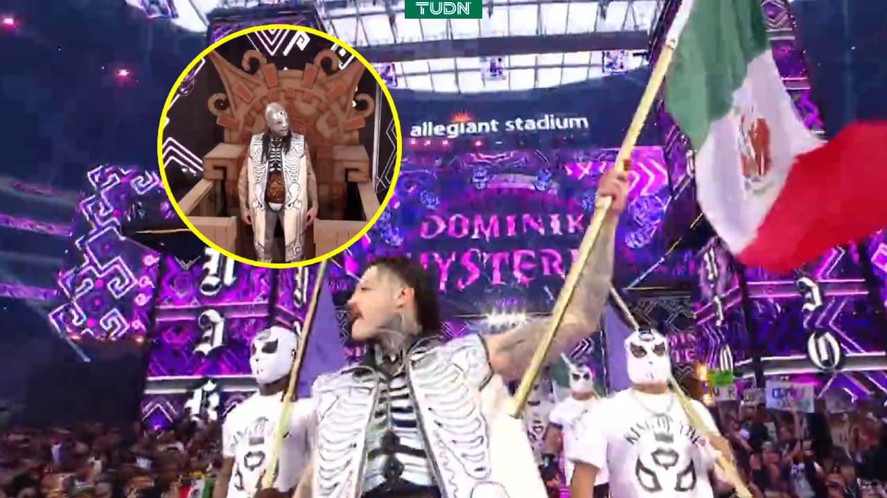 Dirty Dom sacó banderas de México en su entrada para su lucha ante Finn Bálor en el Allegiant Stadium de Las Vegas.